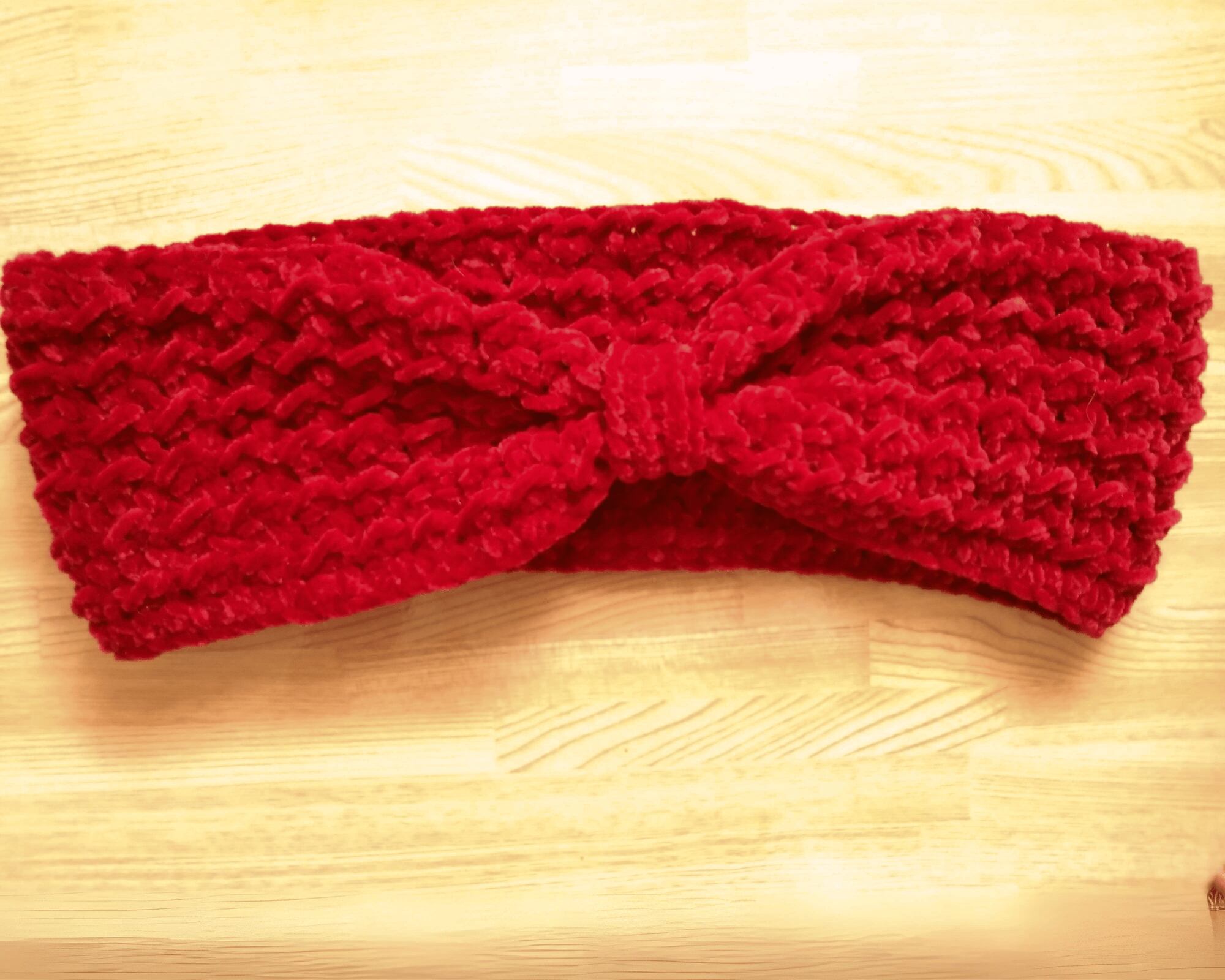 このアイデアは、Etsyで人気のニコライさんのデザインを見て思いつき、リボンイヤウォーマーが誕生しました。オリジナルのデザインは、シンプルでありながら、洋服に個性をプラスする痛快なものです。この柄はもともとコットンとアクリルのミックス糸を使っていた。しかし、もう少し白雪姫のテイストを加えたいと思い、プリンセスのあどけなさと色彩を呼び起こすことができる糸を選びました。