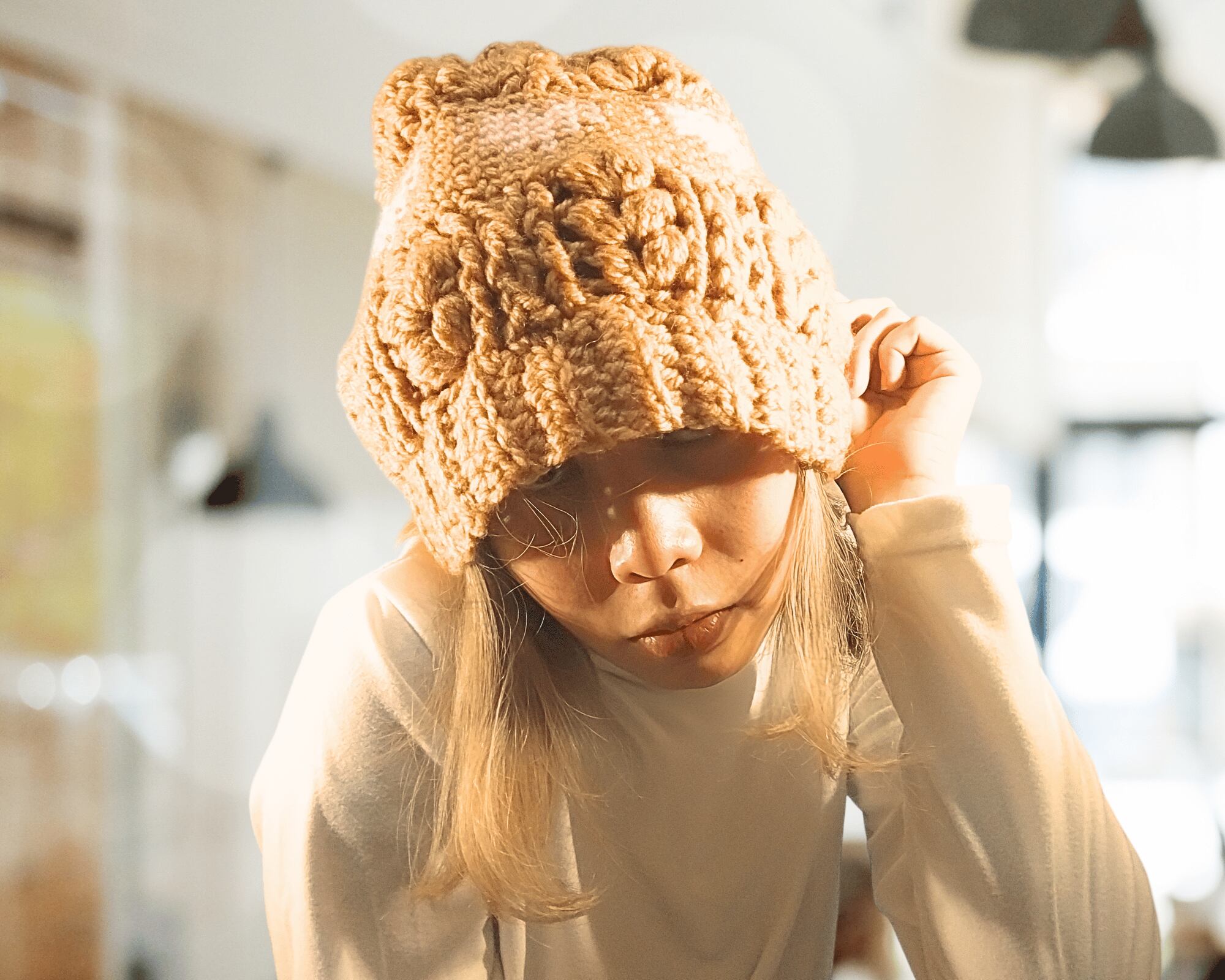 大人になった今、その長年の思い込みは、私が取り組んできたことでした。今でも少しずつ慣れてきています。特に、冬は一年中肌寒いので、頭や髪を守ることの大切さがわかるようにななりました。そして、服作りを仕事として始めたので、ビーニーのスタイリングの仕方や、スタイリングに最適なビーニーの作り方など、あと2つほど独学でやってみようと思いました。